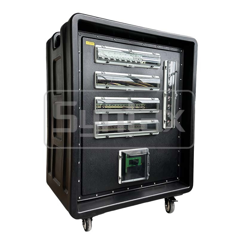 This three phase 500Amp HDPE portable distro is special designed for the Event and film Industry. Designed and manufactured in house, our experienced team of Engineers have ensured every inch of this distro has been thought through to the finest detail. Each outgoing single phase socket is protected by RCBO, and each outgoing three phase socket is protected by MCB and Earth-leakage Relays. Main Switch is 4P 400A Molded Case Circuit Breaker by Schneider. This power distribution board is made in PE and IP67 Waterproof, which is perfect for the sports events and stage power distributing. We can bespoke power distribution boxes built to order.