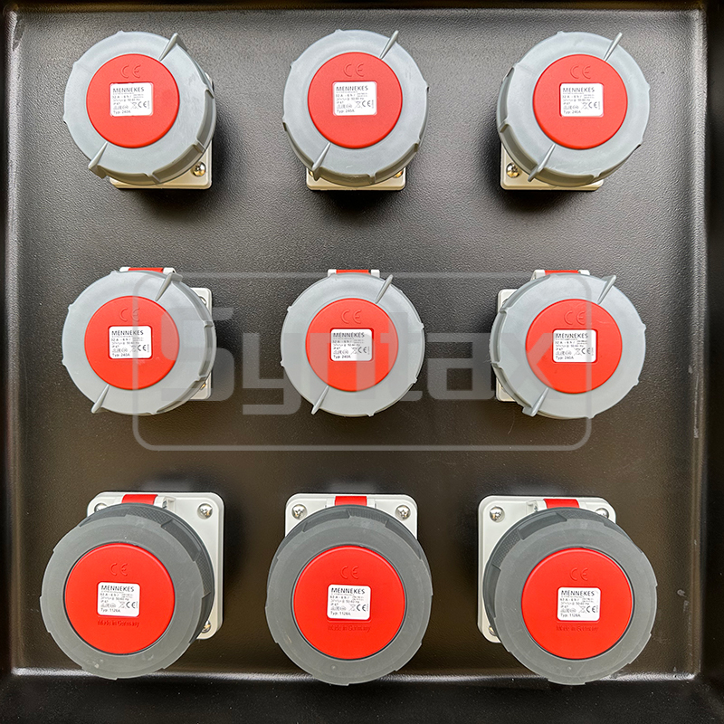 Stromverteilerbox von Syntax; Industrielle Stecker & Steckdosen von Mennekes; Schutzschalter von Schneider. |