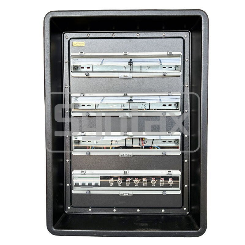| Komponentenmarken | Verteilerkasten von Syntax; Industriestecker & -steckdosen von PowerSyntax; Leistungsschalter von Schneider |