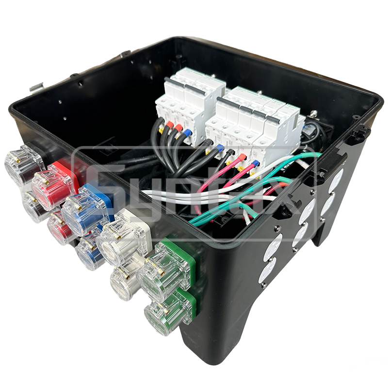 | Komponentenmarken | Verteilerbox von Syntax; Industriestecker & -steckdosen von PowerSyntax; Leistungsschalter von Schneider |